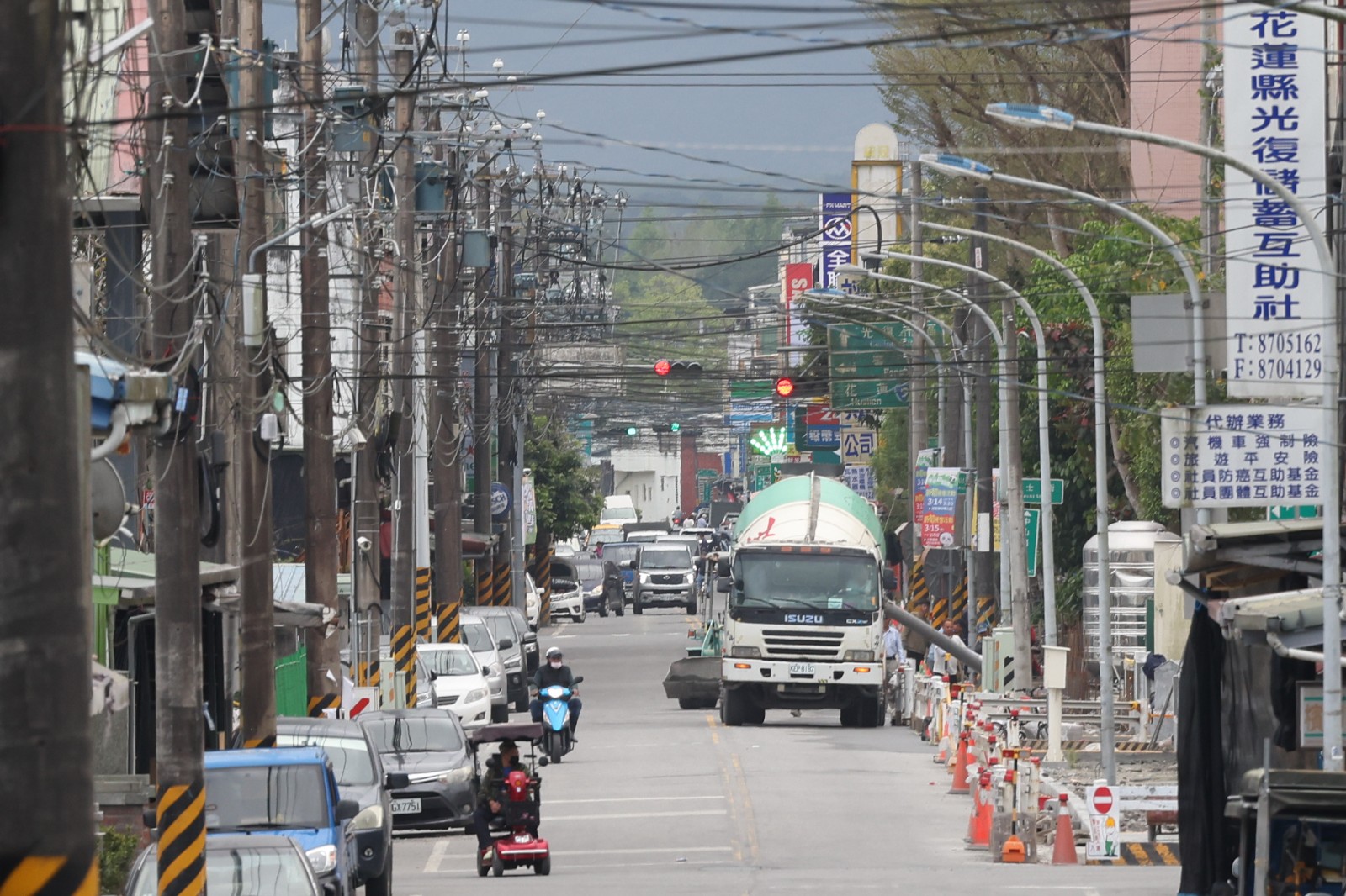 光復市區街道上仍有大型水泥車、砂石車穿梭。廖瑞祥攝