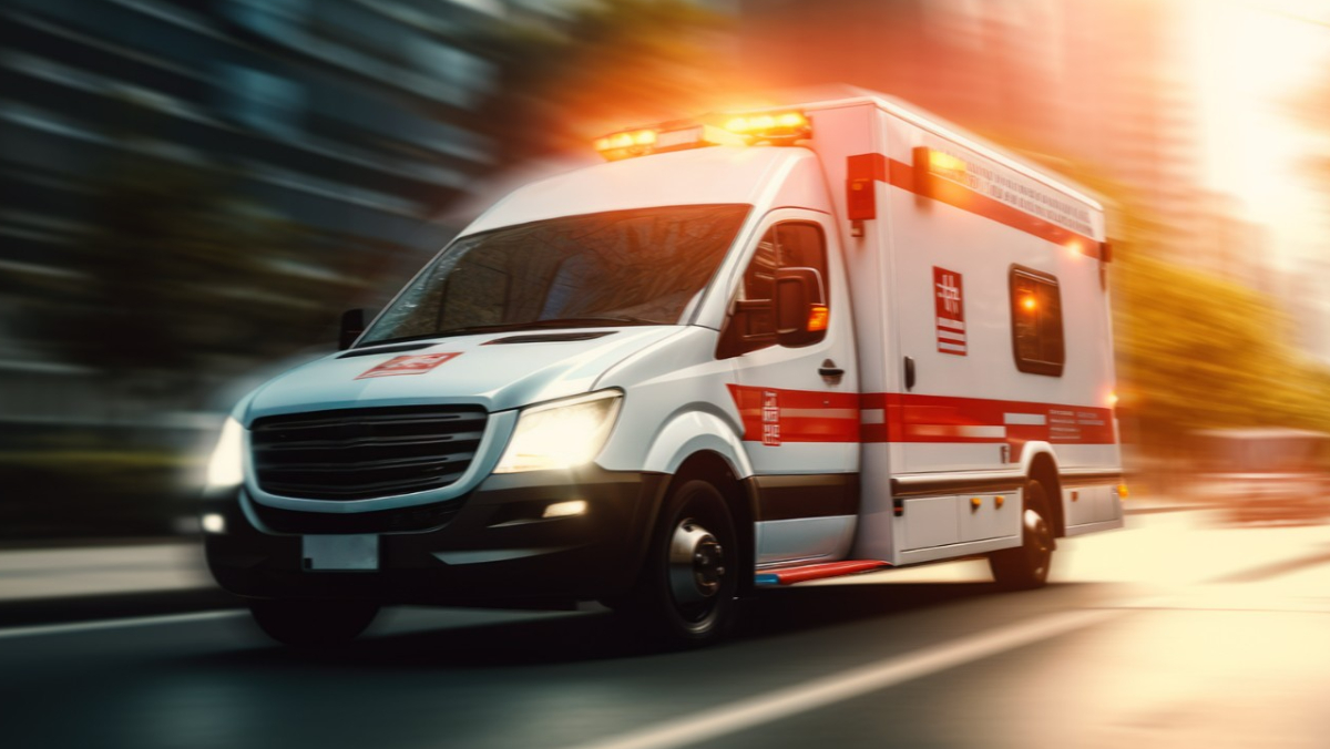 台北市某知名高中昨(27日)晚間驚傳學生墜樓事故。救護車示意圖。本報繪製