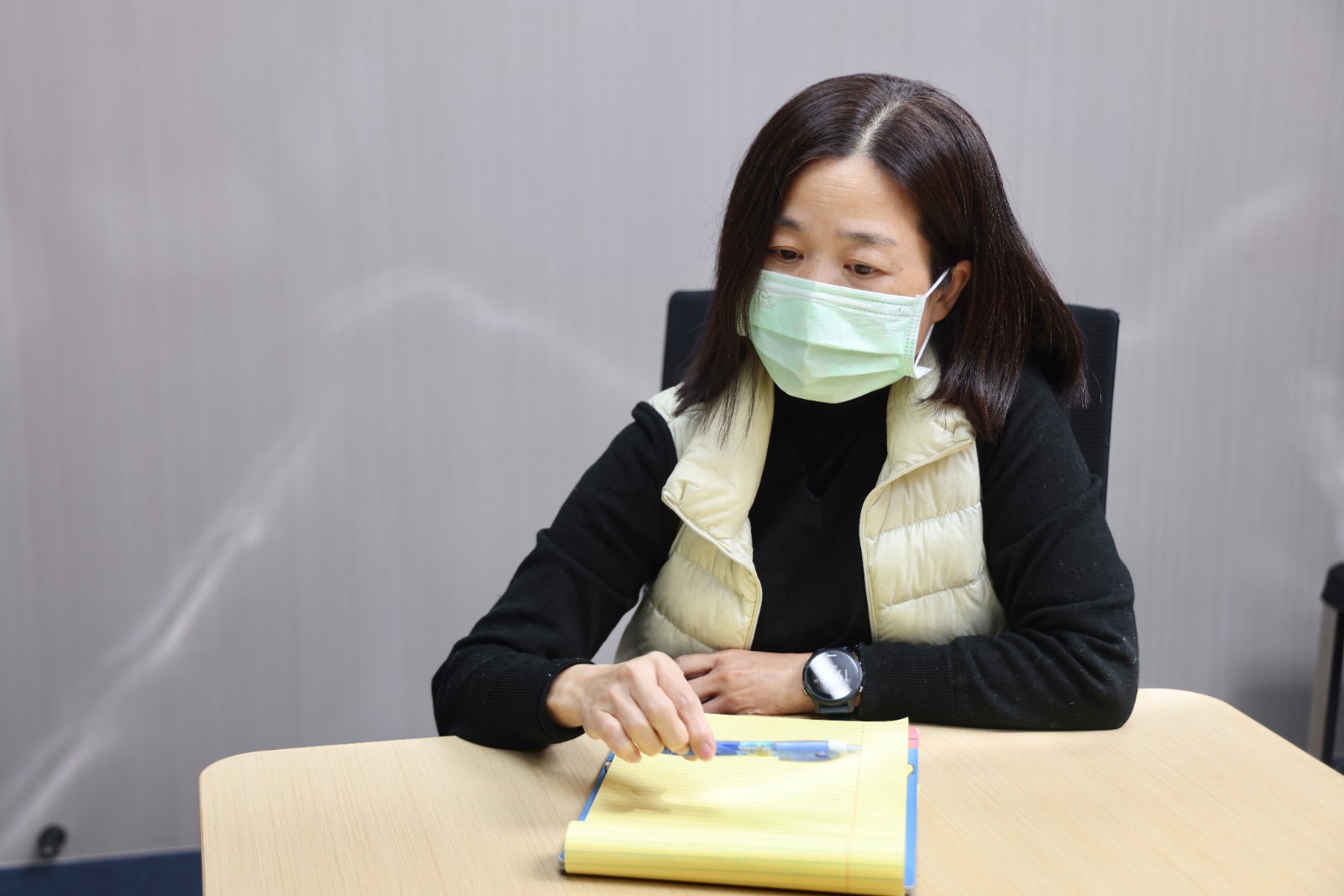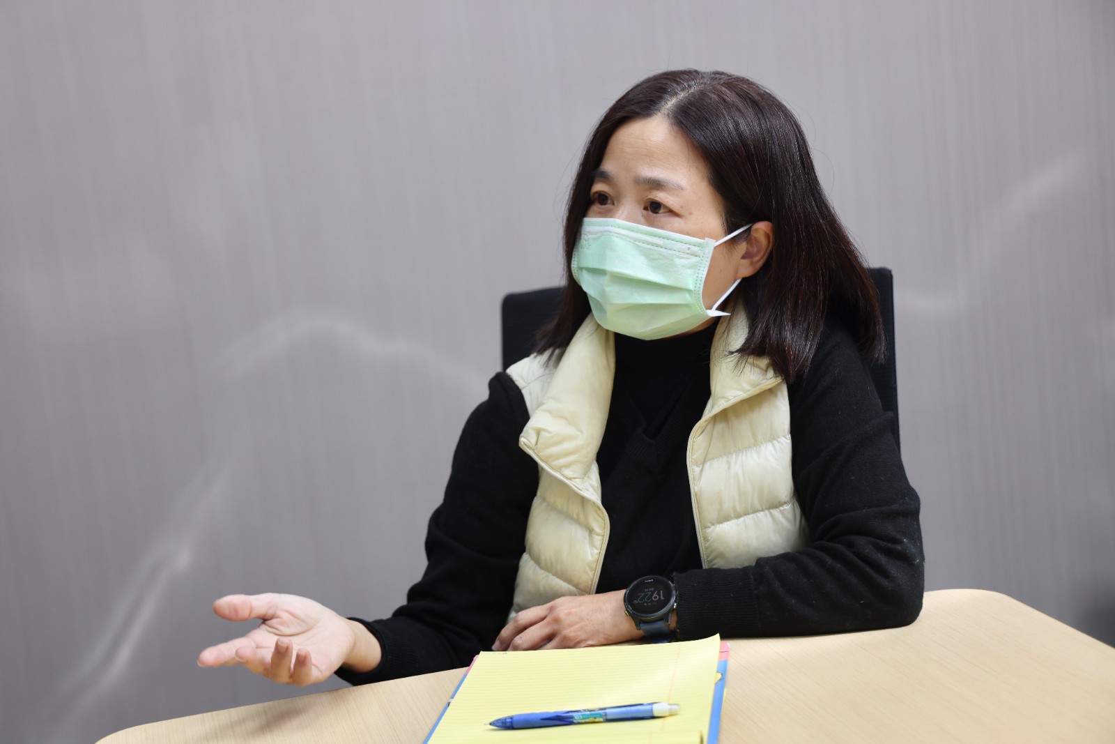鄭嘉欣專訪當天拖著感冒的身體,向記者分析失智症宣導的重要性。李政龍攝