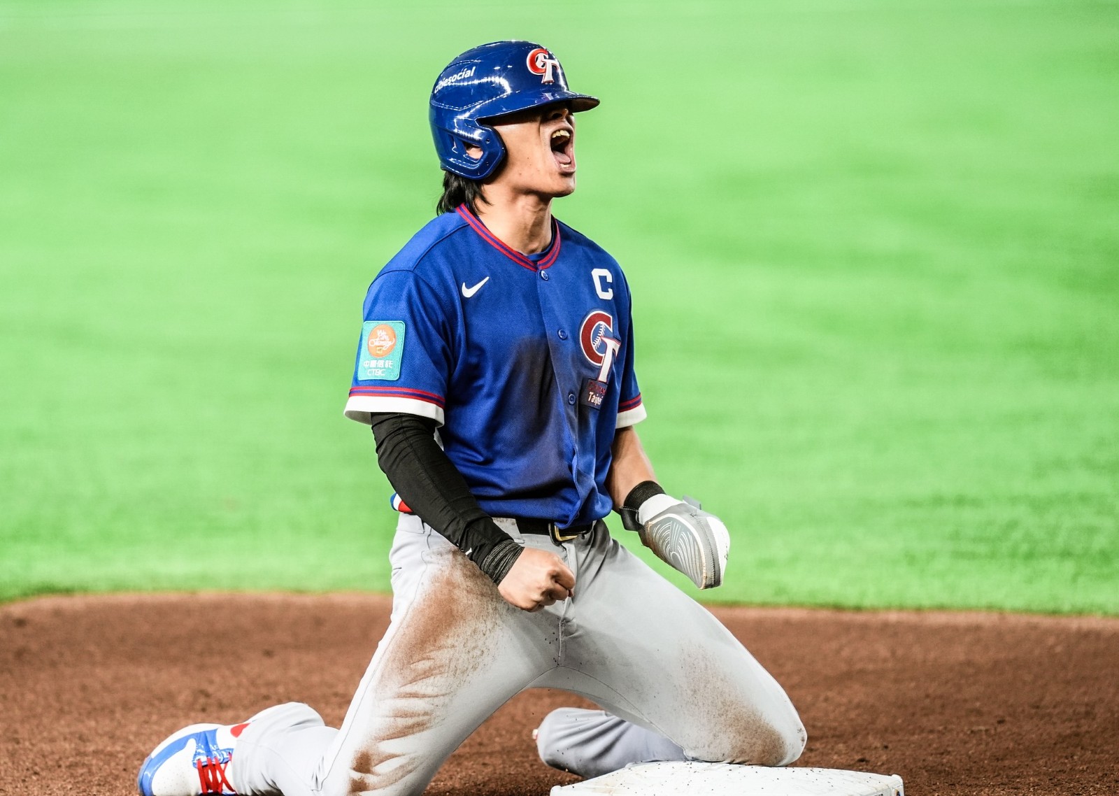 WBC台韓大戰延長賽,手指骨裂的「台灣隊長」陳傑憲上場代跑,跑回超前分。統一7-ELEVEn獅提供