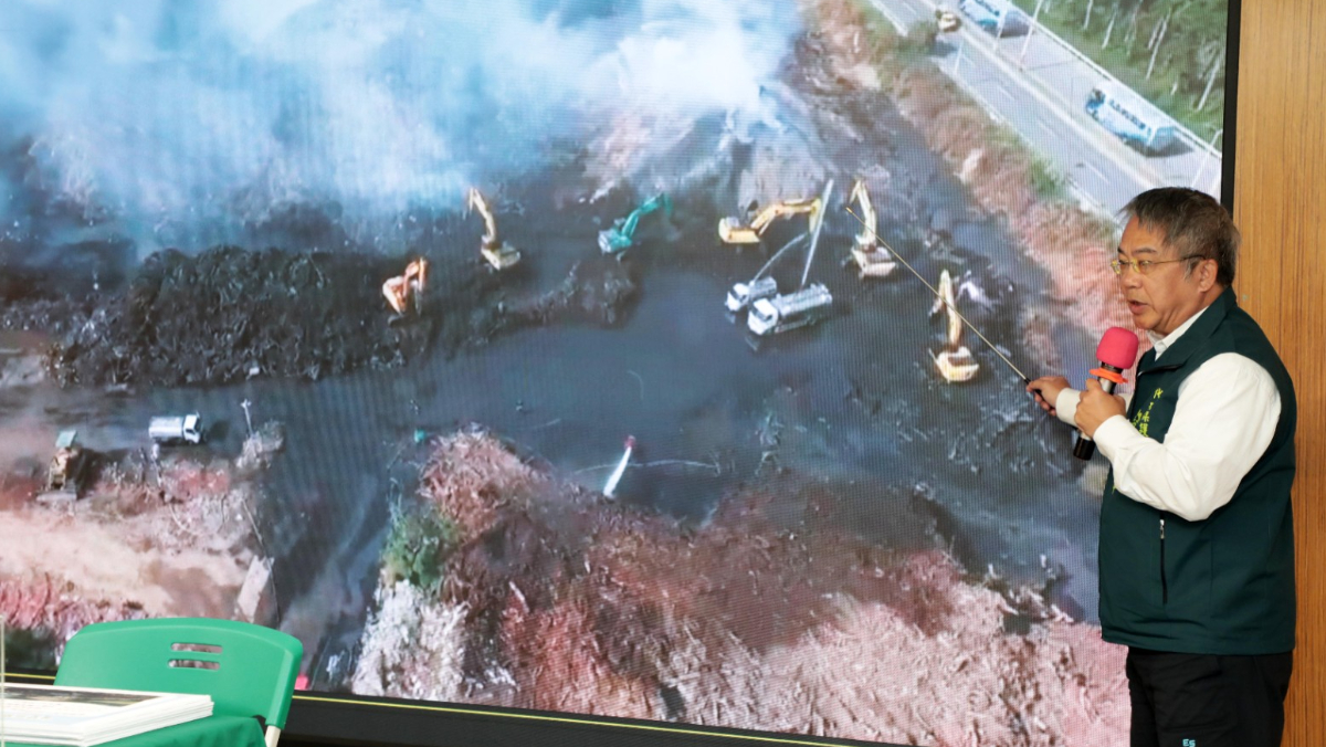 台南市後壁區烏樹林暫置場上月21日發生大火,火勢撲滅後持續悶燒,昨深夜11時30分才完全熄滅。台南市政府消防局及環保局今天(12/4)舉行記者會,說明處理過程及後續作業,並為火警帶來的影響向市民致歉。