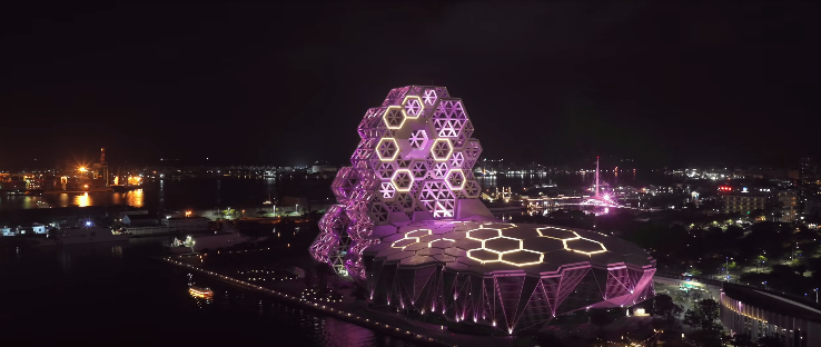 迎接BLACKPINK抵台倒數,高雄6大地標點燈迎接。Live Nation Taiwan提供