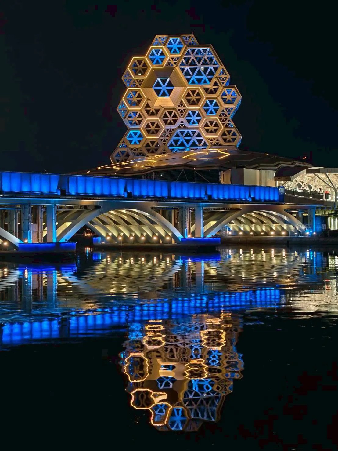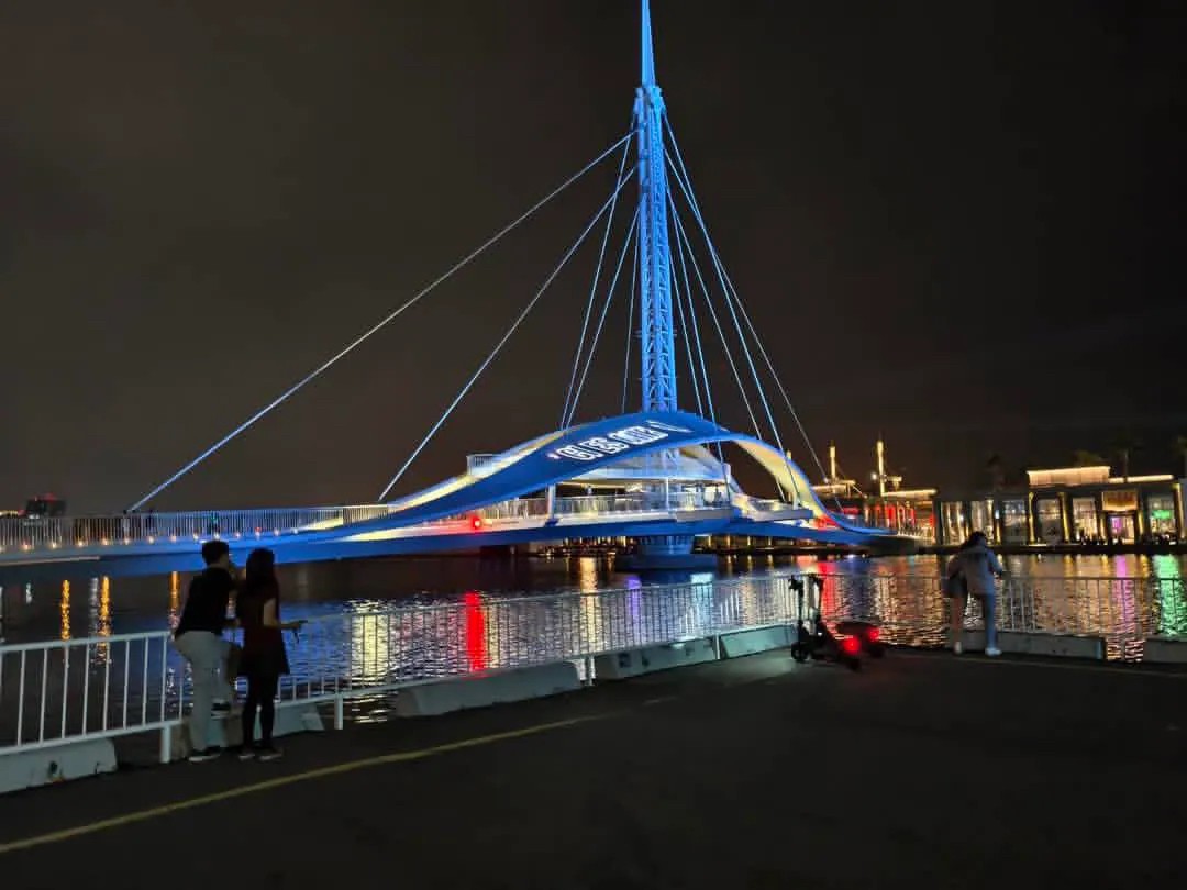 迎接女子天團TWICE演唱會,高雄知名地標陸續點了藍燈,粉絲懷疑市府這回使用藍燈應援TWICE。Threads友zhuojum授權