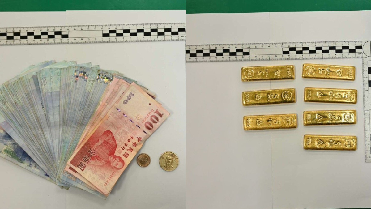 南苗派出所派員到場後,清點出有7條5兩黃金,附有銀樓保證書和購買單據,另有6萬多元新台幣紙鈔、1萬多人民幣紙鈔。