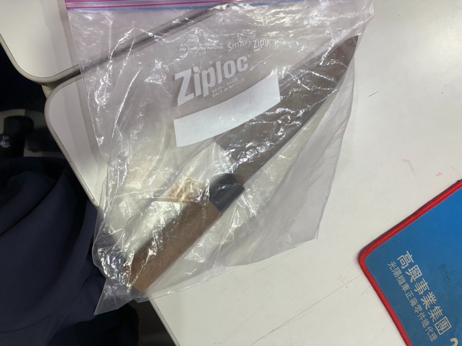 陳男持凶器主廚刀由警方查扣。讀者提供