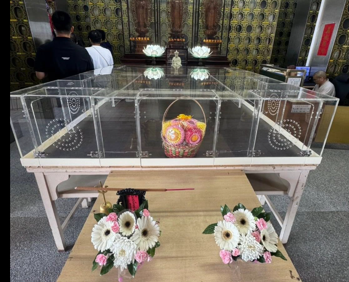 台灣獼猴搶供品,元亨寺加裝壓克力罩。翻攝陽光禮儀 • 生前契約臉書