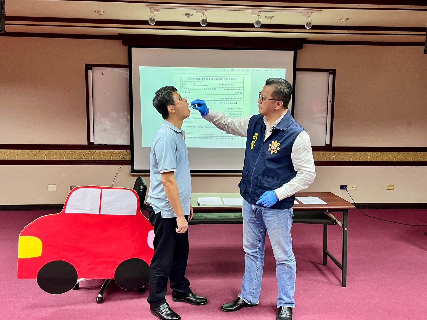 彰化縣警察局刑大舉辦「唾液毒品快篩試劑」教育訓練,邀集各單位刑事及交通幹部及承辦人員參訓,以實作情境演練及快篩試劑操作方式、執法注意事項等,培訓種子教官,確保執勤同仁執法正確性與合法性。