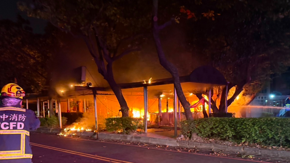 台中市西區華美西街一段土地公廟發生火災,從26日深夜燒到今(27)日凌晨撲滅,廟體燒毀。讀者提供