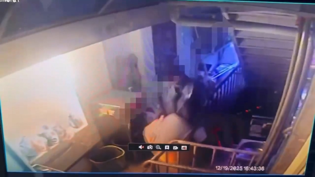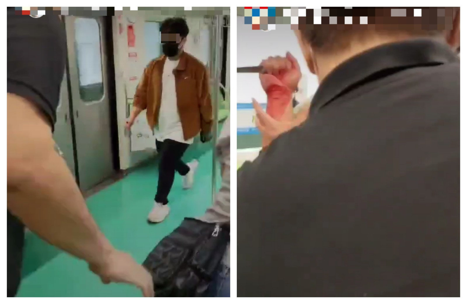 台中捷運砍人另一視角曝光,黑衣大叔勇敢擋下洪男。翻攝報廢公社