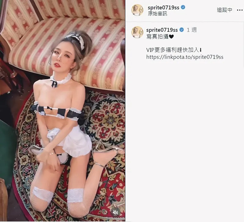 網紅雪碧平日會在IG上傳性感照,招攬粉絲加入OnlyFans會員。翻攝自雪碧IG