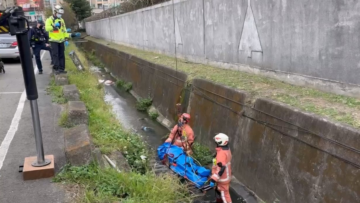 新竹市消防局上午11點27分獲報,空軍基地旁大水溝內有人掉進水溝,立刻派遣人車趕抵現場,發現死者面部朝下、明顯死亡。