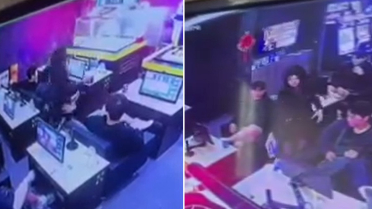 監視器畫面拍下出沒在電子遊藝場的男子,疑似伸手觸摸女性工作人員臀部。翻攝Threads