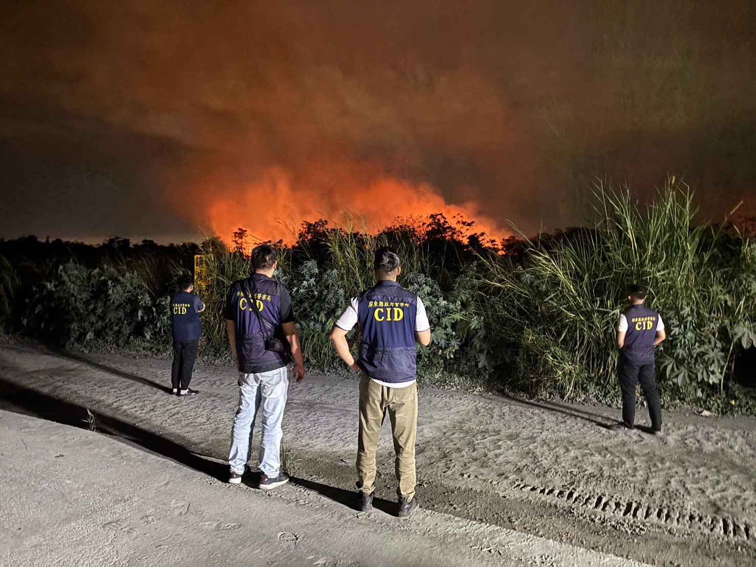 里港警分局表示,警方於27日晚間20時42分接獲消防局轉報,起火地點附近有可疑人車。員警到場盤查發現莊男、鍾男及謝男於27日9時許先前往該處架設捕獵陷阱,欲捕抓山豬及飛禽,以打火機點燃附近雜草,準備獵殺遭火驅趕竄逃獵物,卻引發大規模火警。