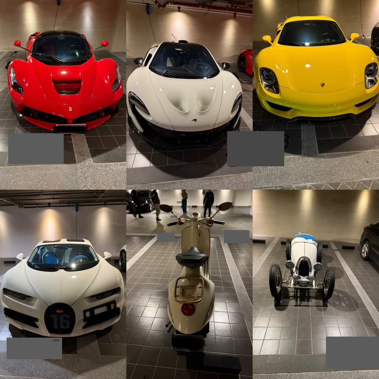 柬埔寨太子集團涉嫌在台洗錢,董事長陳志、台灣領導人李添熱愛蒐集名車,「4大神獸」布卡堤Bugatti Chiron、麥拉倫P1、法拉利LaFerarri、保時捷918 Spyder、布卡堤老爺車和Dior速可達均遭到扣押。資料照。調查局提供