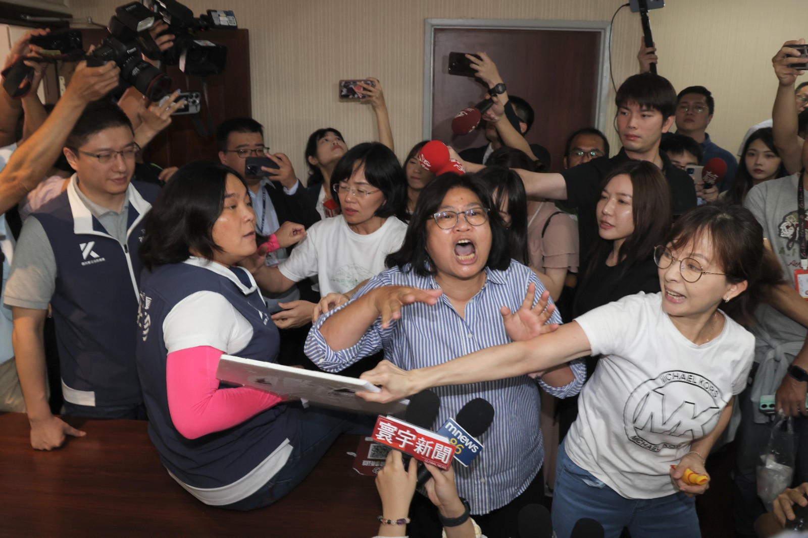 2024年7月8日,藍綠立委在內政委員會簽到處口角推擠。廖瑞祥攝