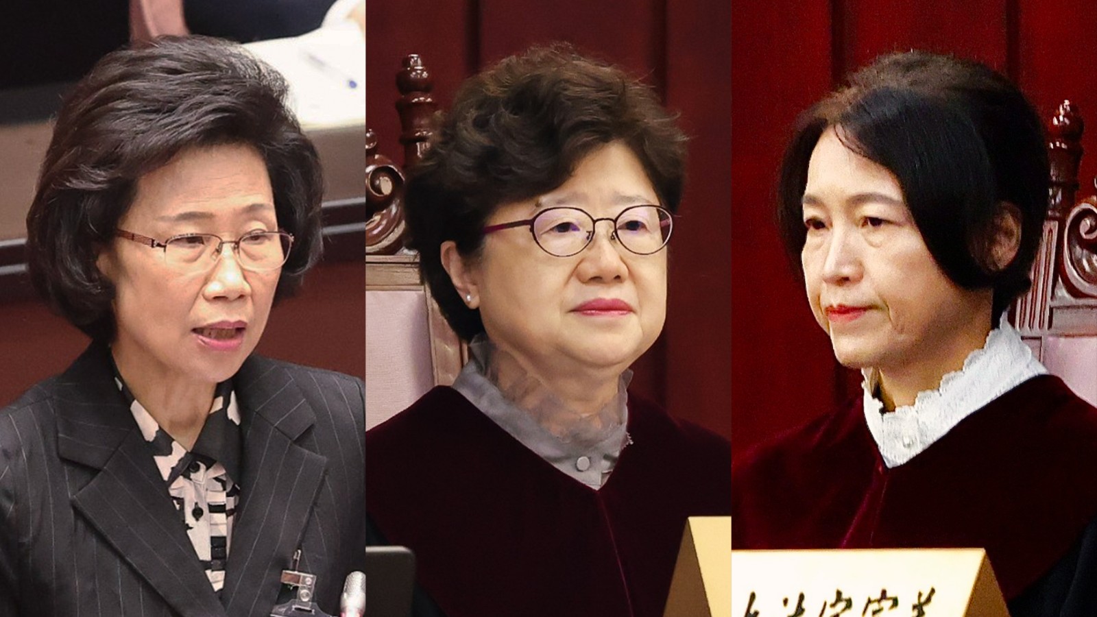 大法官朱富美(左起)、楊惠欽、蔡宗珍是否參加憲法法庭說明會,受到矚目。資料照