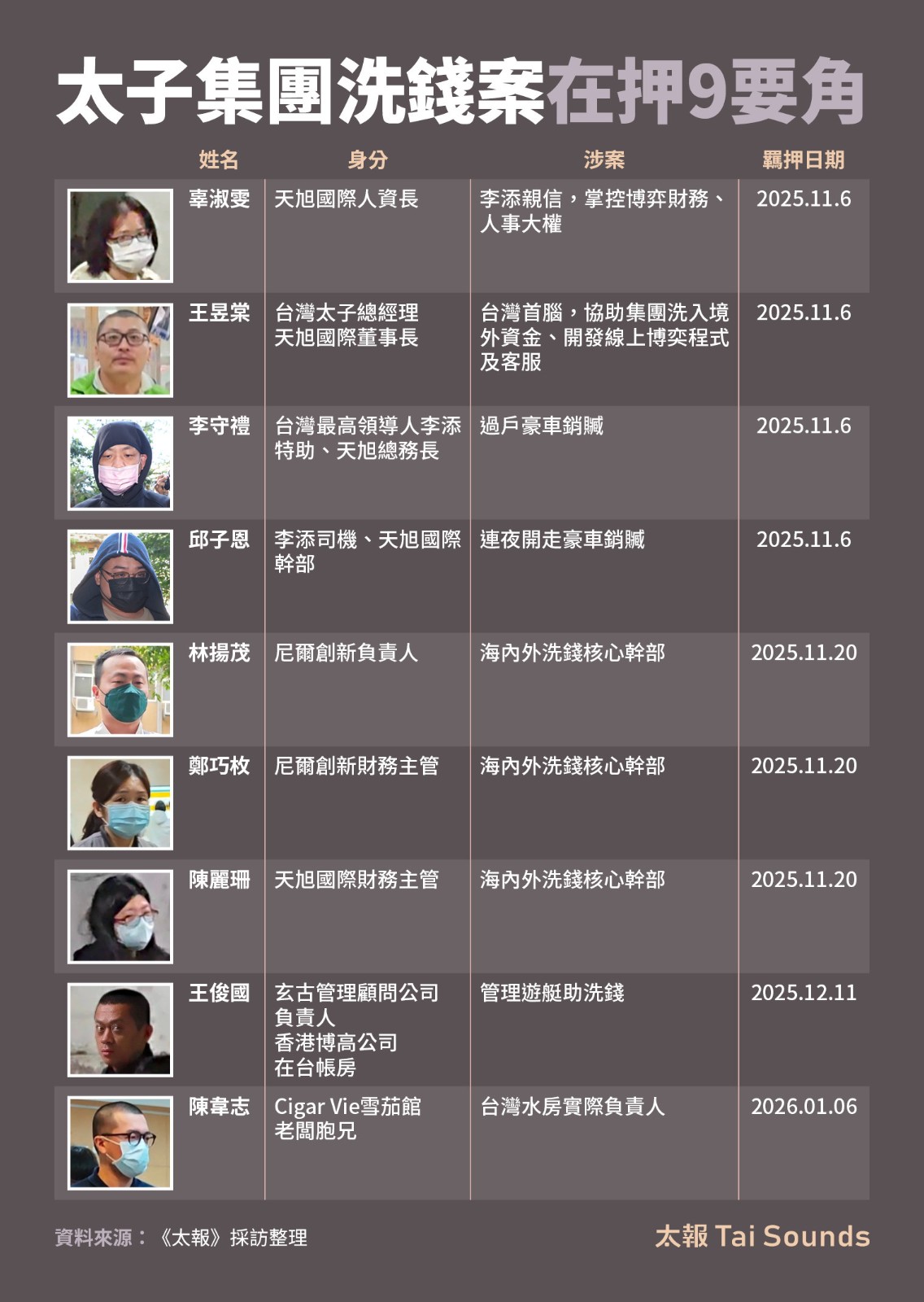 太子集團在台洗錢案,共有9名幹部在押。《太報》採訪整理