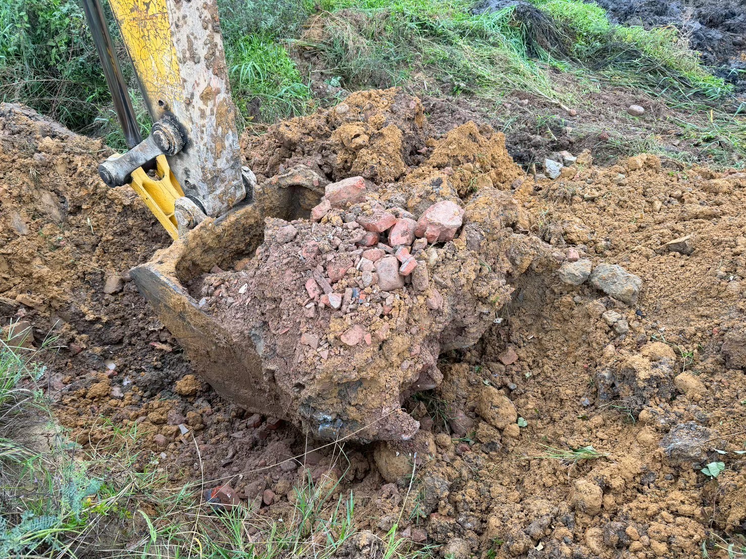 經現場開挖發現埤塘內被回填大量的營建廢棄物。桃園地檢署提供