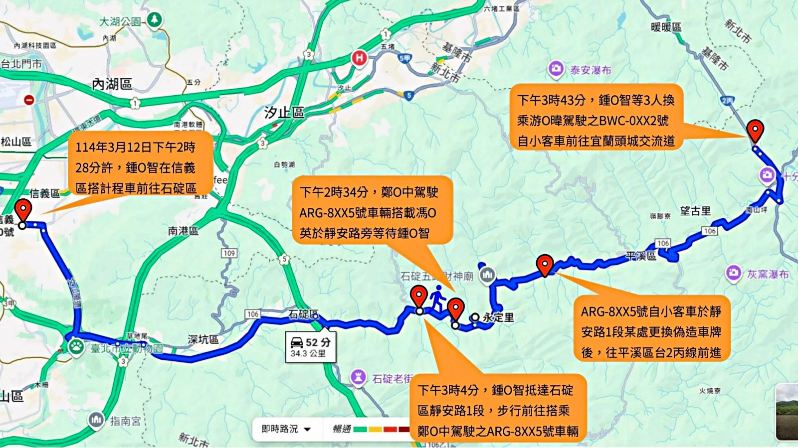 鍾文智棄保潛逃路線。台北地檢署提供