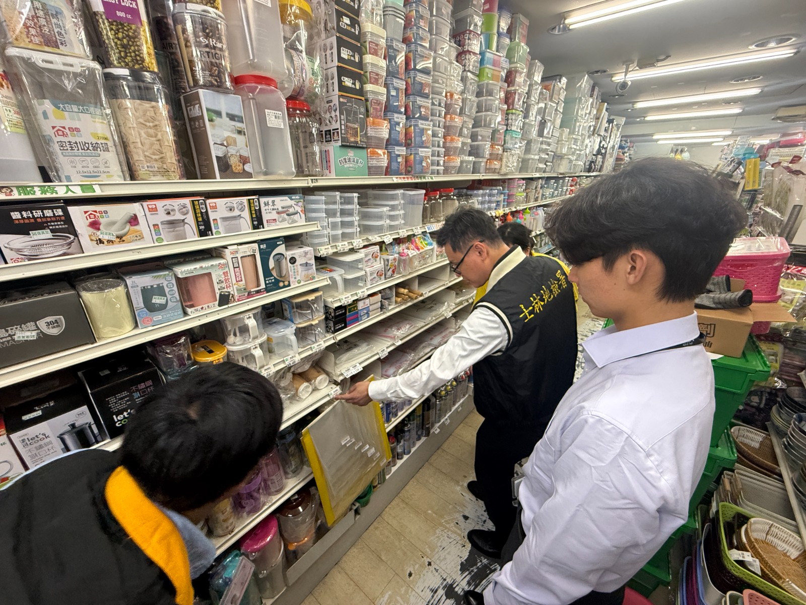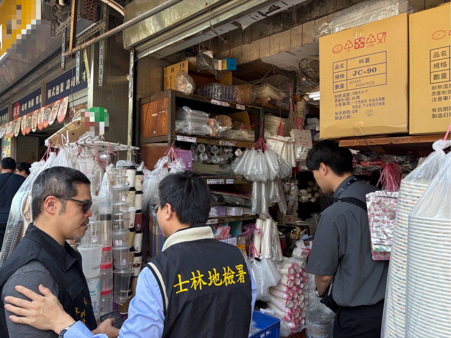 士林地檢署主任檢察官劉東昀帶領聯合稽查小組前往台北市塑膠製品店家進行查察。士林地檢署提供