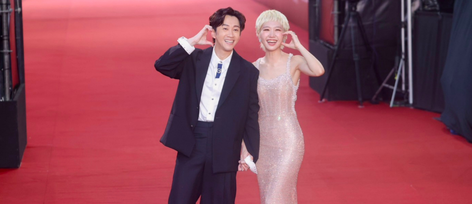 第60屆節目類金鐘獎星光大道今(10╱17)下午5點在台北流行音樂中心登場,由夏和熙、木木(林葦妮)擔綱主持人,首先踏上紅毯的是頒獎典禮主持人Lulu(黃路梓茵),9月11日才宣布與陳漢典閃婚的她驚喜牽著老公和吳宗憲走紅毯。