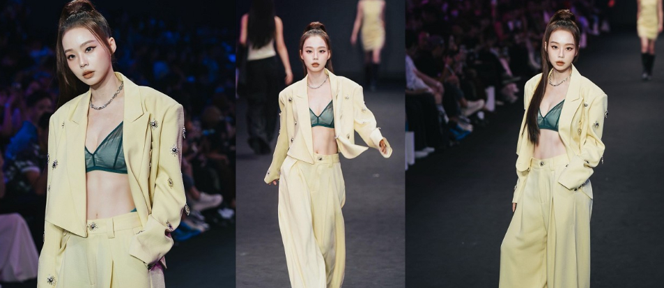 出道超過30年的台語歌后受邀參加「台北時裝周」走秀,大尺度現身伸展台!身穿亮黃色西裝、內搭綠色外穿式Bra,一頭俐落馬尾造型,渾身散發自信光芒。火辣造型瞬間引爆全場尖叫,網友留言「被歌手耽誤的名模」。