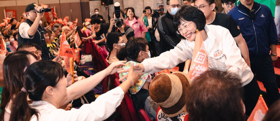 新北市長候選人蘇巧慧自美麗島民調適任度以43.5%首度超越李四川41.5%後,選情後勢看漲。今(18)日蘇巧慧從自己的選區出發,啟動「慧做事,拚未來」基層座談會,上午在鶯歌超過一千兩百人,爆場到椅子不夠用,下午在新莊中港國小一樣湧入上一千五百名基層民眾,伴隨今天剛公布的進場樂一起高喊「會做事,事做對,溫暖創新蘇巧慧」。