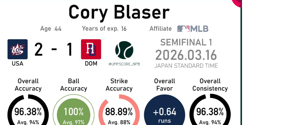 美多經典戰4強戰,引發主審布雷瑟(Cory Blaser)判決爭議,導致多明尼加在9局下半反攻失敗,主審的「美國籍」與「誤判」雙重錯誤,讓大會不得不提出科技證據說明。