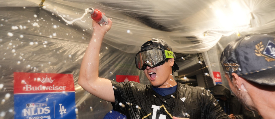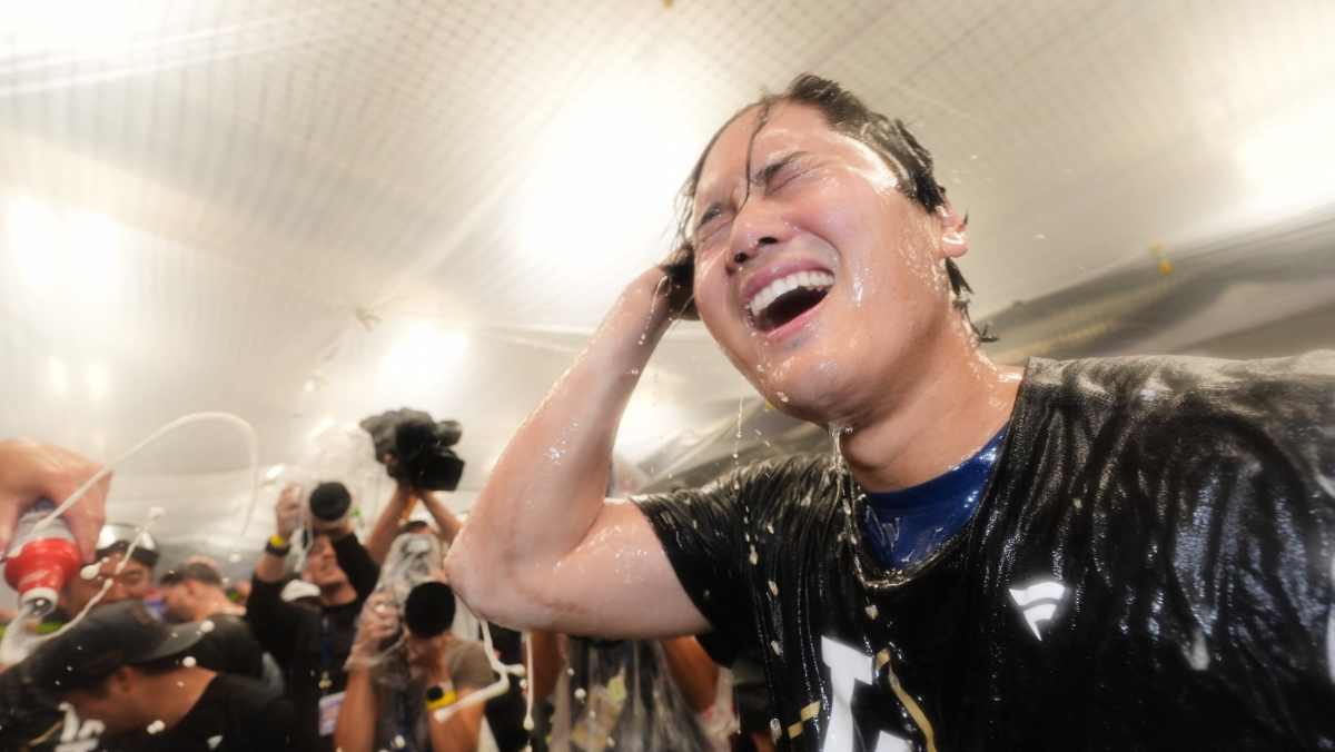 洛杉磯道奇二刀流球星大谷翔平,在國家聯盟分區系列賽打得並不理想,18打數苦吞9K打擊率1成都不到,但他在系列賽G1仍以投手身分繳出好表現為團隊做出貢獻,在球隊確定晉級國聯冠軍戰這天的香檳浴,他笑說:「做幾次都沒關係,我們會努力專注,爭取在下一輪也能再做一次」,另外他也大讚學弟佐佐木朗希的表現「很可靠」。
