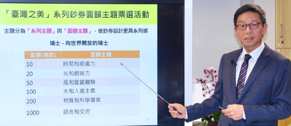總統賴清德去年底宣布要讓棒球12強冠軍隊成員登上500元紙鈔,各界對於鈔券改版高度關注,中央銀行發行局局長鄧延達今(1/27)日宣布,新版鈔券將以「台灣之美」作為系列主題,央行擬訂12項面額主題,且自即日起開放網路票選,票選方式透過每個電子郵件信箱驗證者限投票1次,最多可票選5項主題,並提供10套「丙午馬年生肖紀念套幣」及100套「台灣國家公園采風系列」平鑄套幣作為活動抽獎使用。