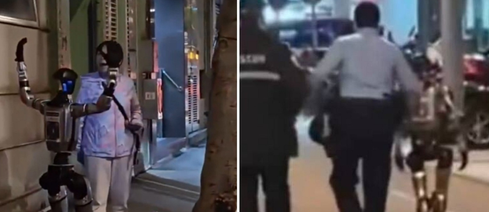 機器人驚嚇路人,被警察逮捕。真實案例在澳門上演!曝光的影片顯示,一名70歲婦人在路旁使用手機,一個人形機器人從後方悄悄地接近她,婦人一轉身看到帶有燈光的機器人,嚇到大罵,還報警,且因為心悸送醫。